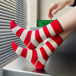 5 Pairs Cute Baby Girls Socks Autumn Rainbow Stripes