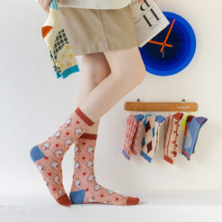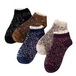 Japanese Mid-Tube Socks Floral Trendy Cotton, 3 Pairs