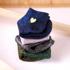 Embroidery Gold Heart Love Glitter Socks Size 35-40