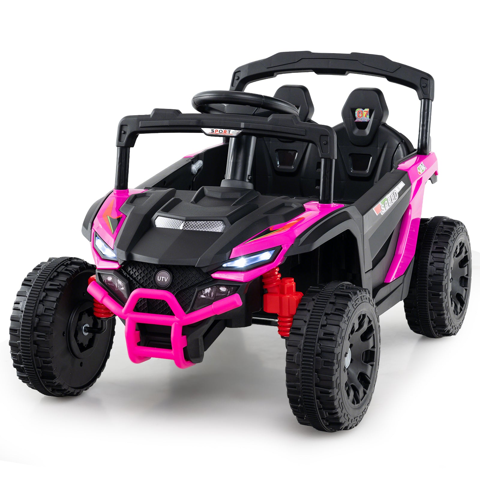 Jump into adventure with this feature-packed ride-on UTV! Perfect for young explorers aged 3 years and above, it offers dual control modes—let your child take the wheel with its interactive pedals and steering, or take over with the handy remote control for peace of mind. Watch your child zoom over hills with the robust 12V battery and two powerful motors, reaching speeds up to 5 km/h! Adventure doesn’t stop when the sun goes down, thanks to LED headlights that spark imagination in every ride. Enjoy the realistic sounds and music from the dashboard that make playtime immersive. Safety is a priority with a secure seat belt and robust, lockable doors. Get ready for endless fun and safe adventures—grab yours now and see your child’s face light up!Â