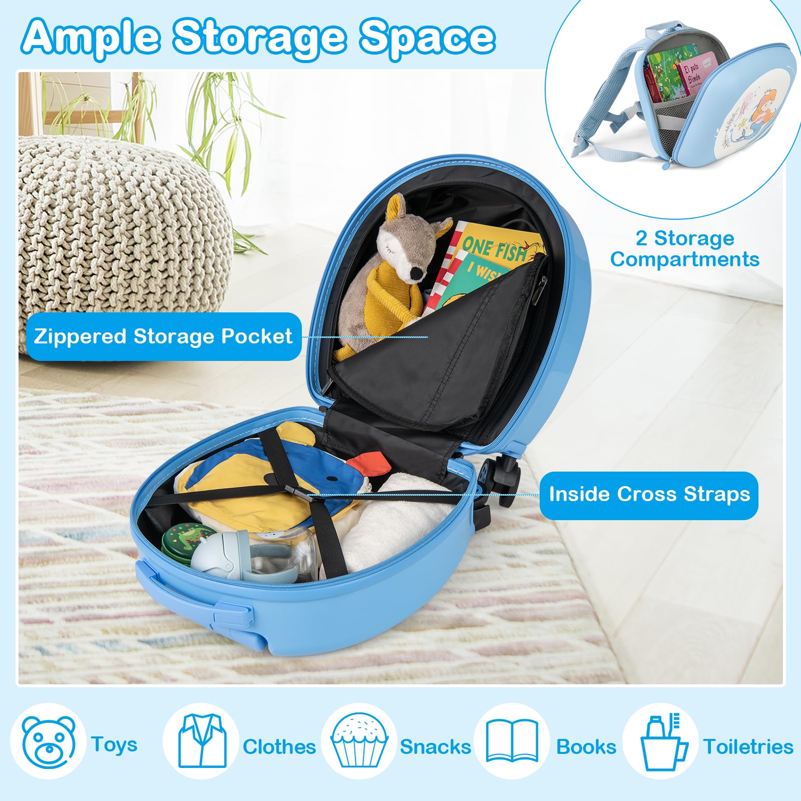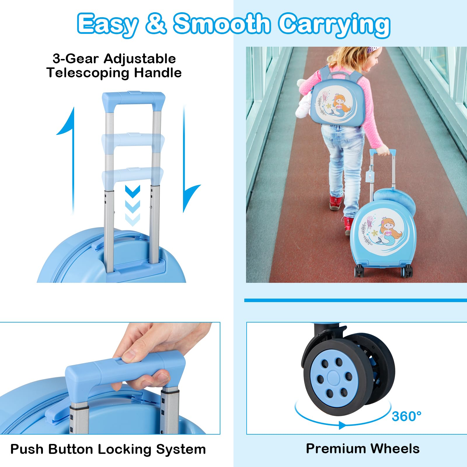 Our 4-piece kid’s luggage set includes a vibrant 14†kids carry-on suitcase, a coordinating 10†backpack that is perfect for day trips or school outings, a soft neck pillow for added comfort during long travels, and a luggage tag for quick identification. Besides, with its 3-level telescoping handle and 4 flexible universal wheels, moving around airports, train stations, or hotel lobbies is a breeze.