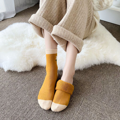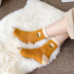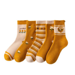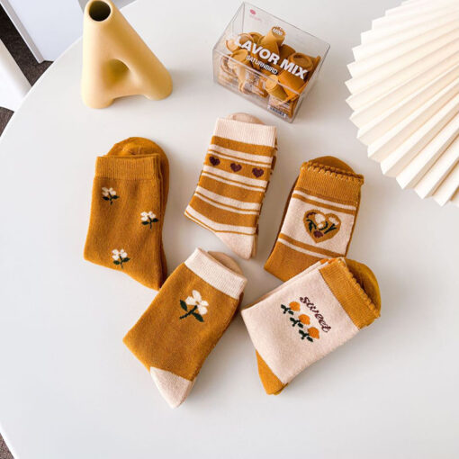 5 Pairs/Lot Yellow Japanese Flower Pattern Socks