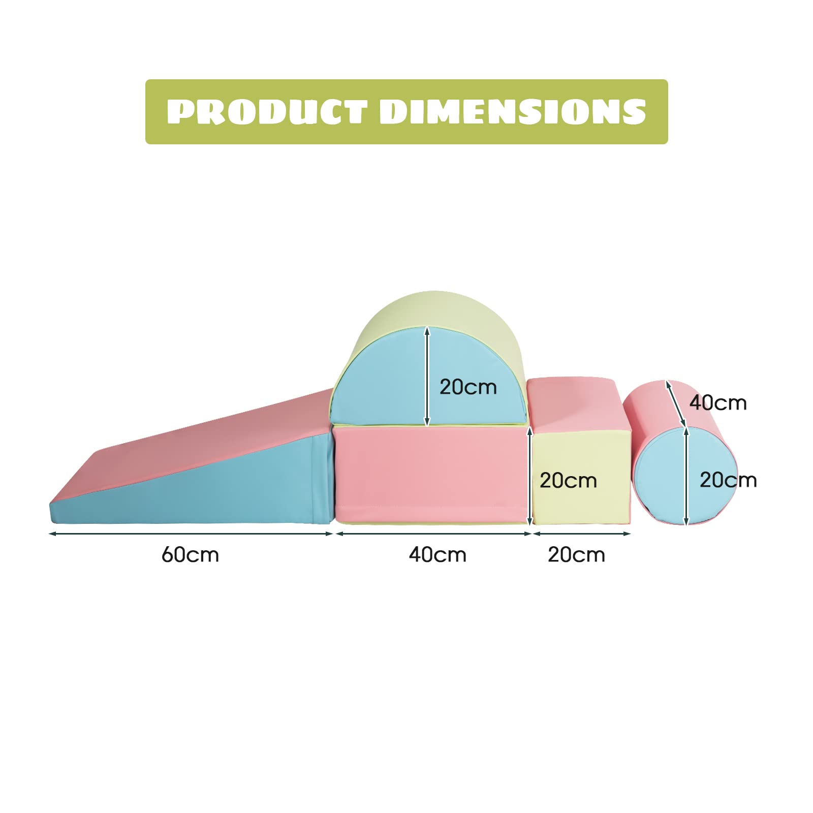 - Easy Maintenance & Storage: The PU cover is waterproof and easy to wipe down. Plus, the zippered cover is easily removable for deep cleaning. The lightweight and stackable design allows for convenient and space-saving storage of this 5-piece foam playset.
