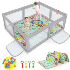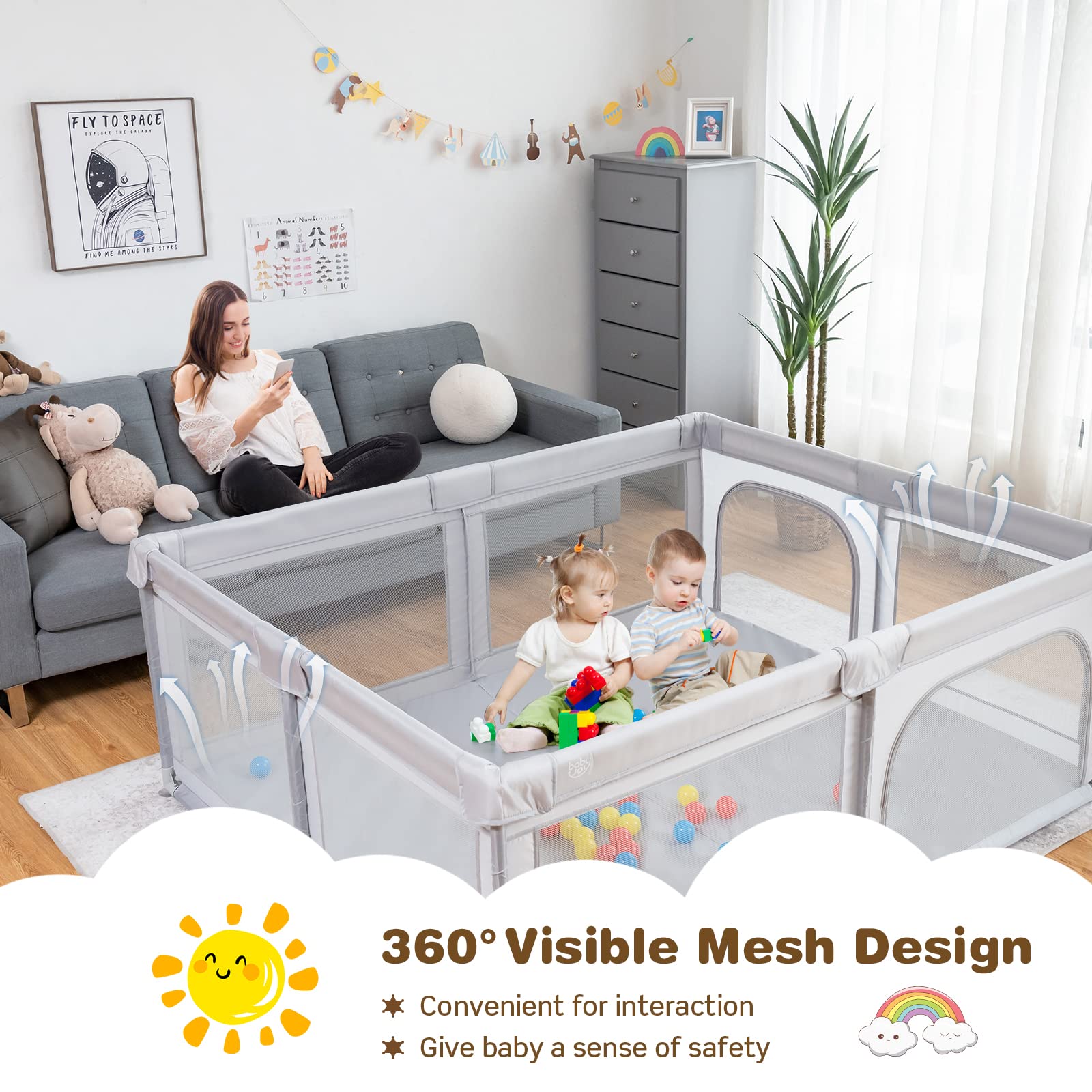 • Liberate Mom’s Hands & 360°Visible Mesh: With this secure baby playpen, both you and your baby can gain an independent space. Especially the 360°visible mesh design enables you to check kids’ condition at all times, leaving you no worry about their safety while cooking, doing housework or even just relaxing.