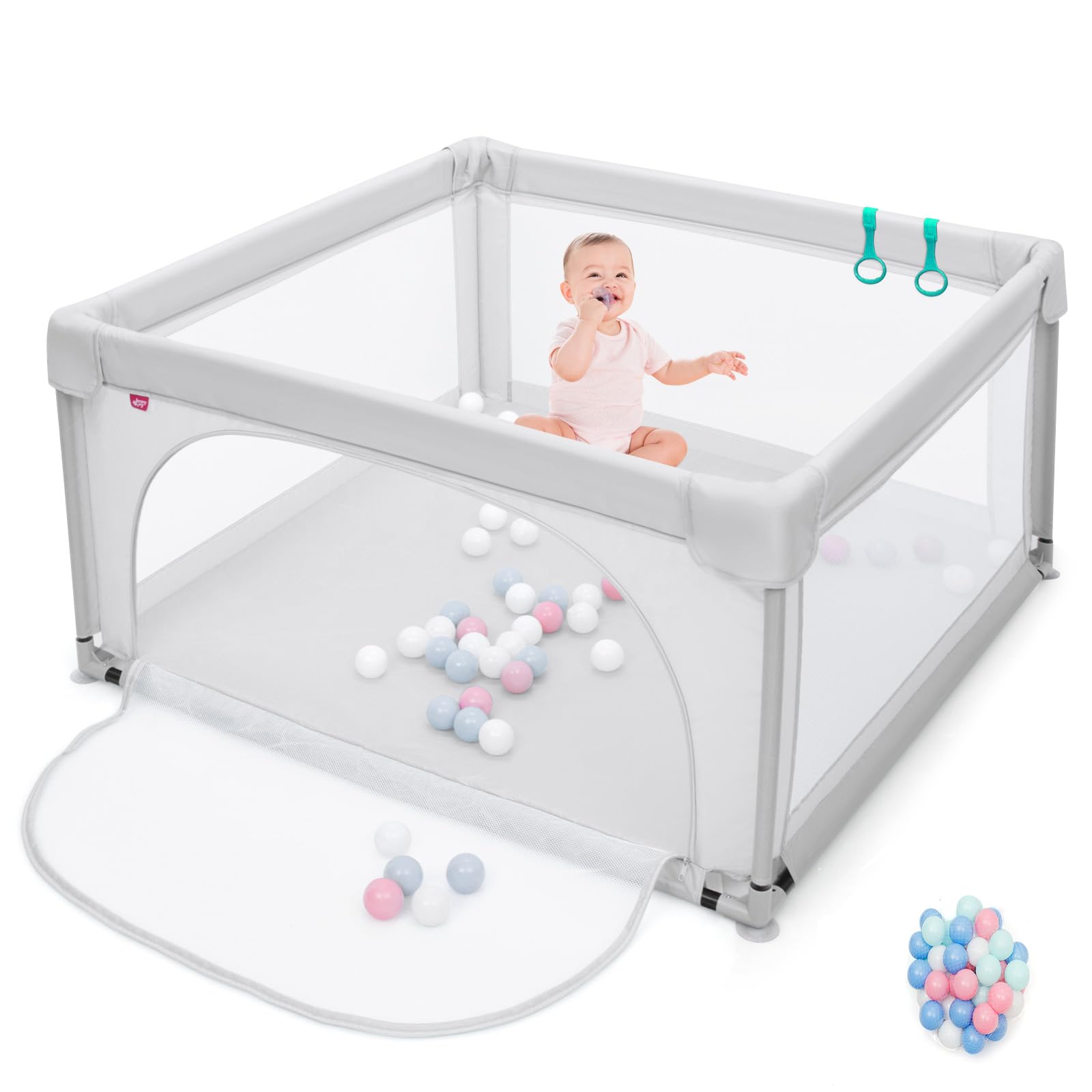 Baby Playpen Large Play Activity Center for Babies w/50 Balls, 2 Pull Rings