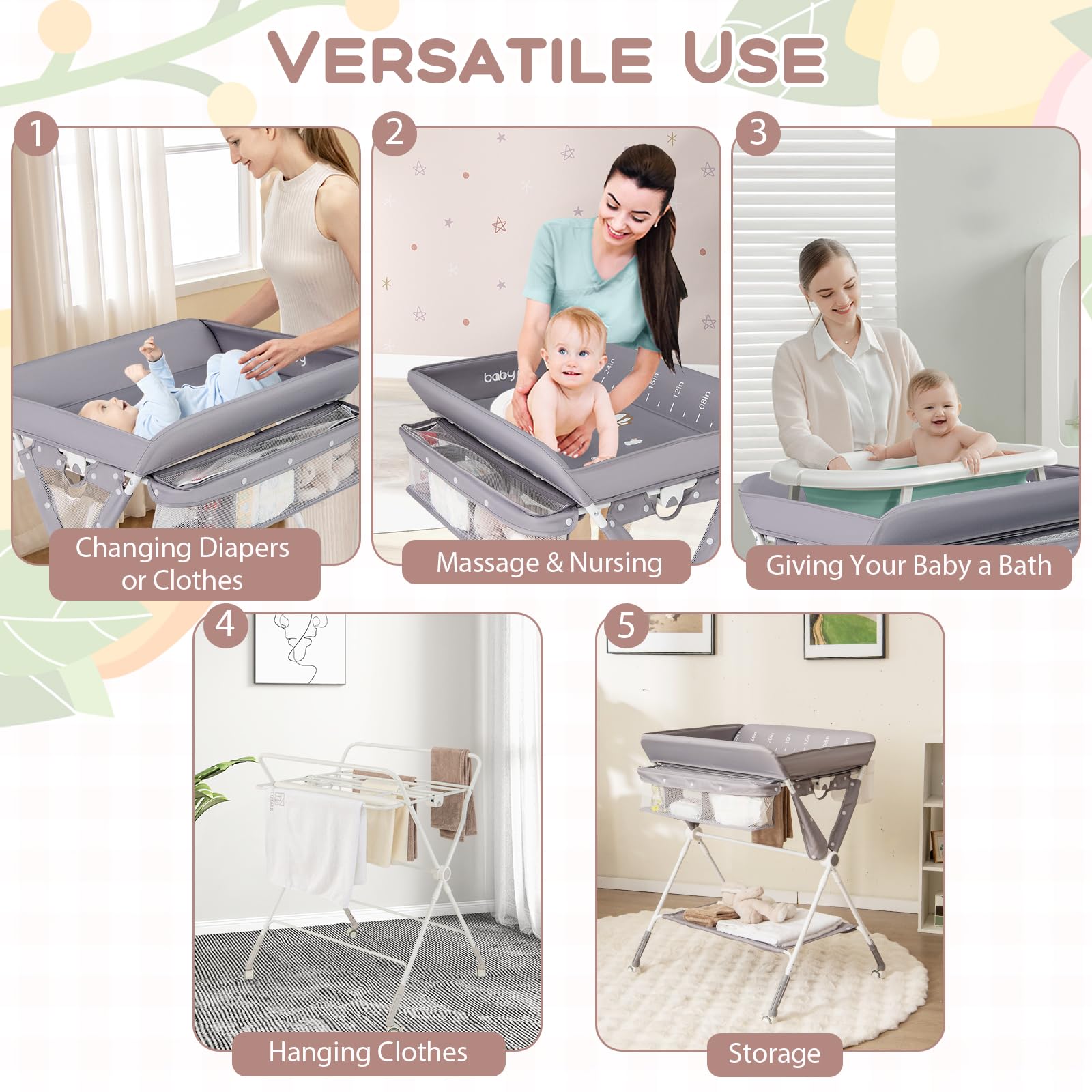 - A trash can is included for convenient baby care