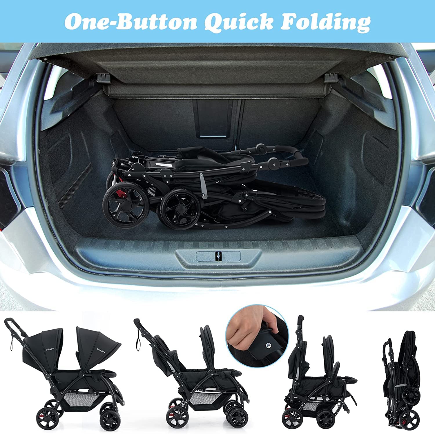 - Parent-Friendly Design: The push handle is adjustable to meet the different demands of parents, so they can grip with more comfort. The basket under the seats provides additional space for parents to place baby accessories. And when not in use, the baby stroller can be quickly folded into a compact size for easy storage and transportation.