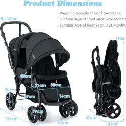 - Functional Double-Seat Design: This baby stroller features a practical 2-seat design, allowing two toddlers to sit on it at the same time, which is perfect for parents who have more than one child. The front seat is available for kids from 6 to 36 months old, and the rear seat is ideal for kids from birth to 36 months.