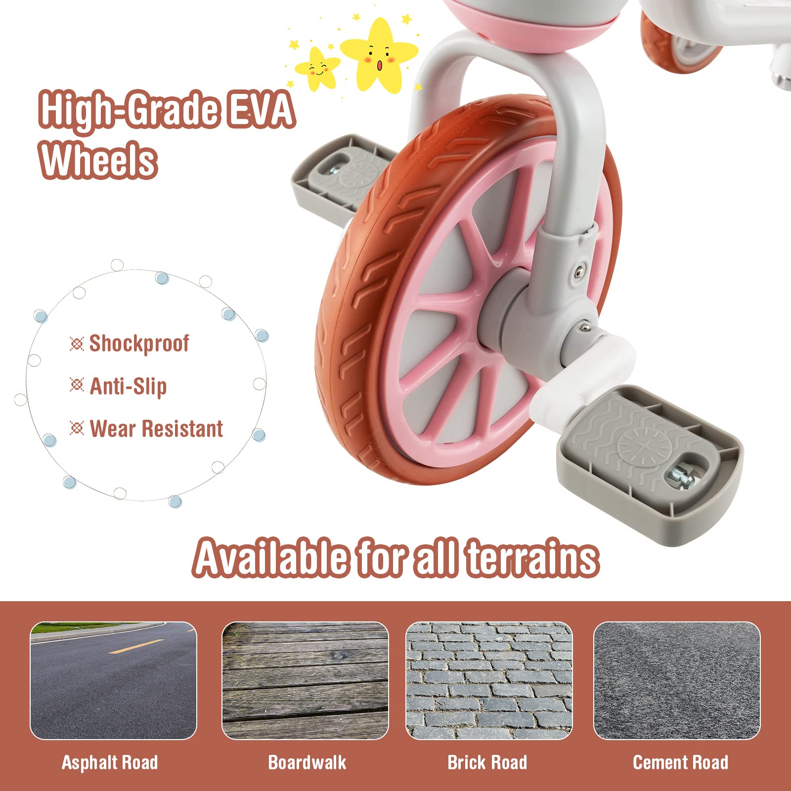 - [ Perfect Gift for Kids ] This toddler trike is designed with cute appearance and multi functions, suitable for growing up kids. The 4-1 tricycle helps to develop kids’ balance skills and enhance their physical fitness.