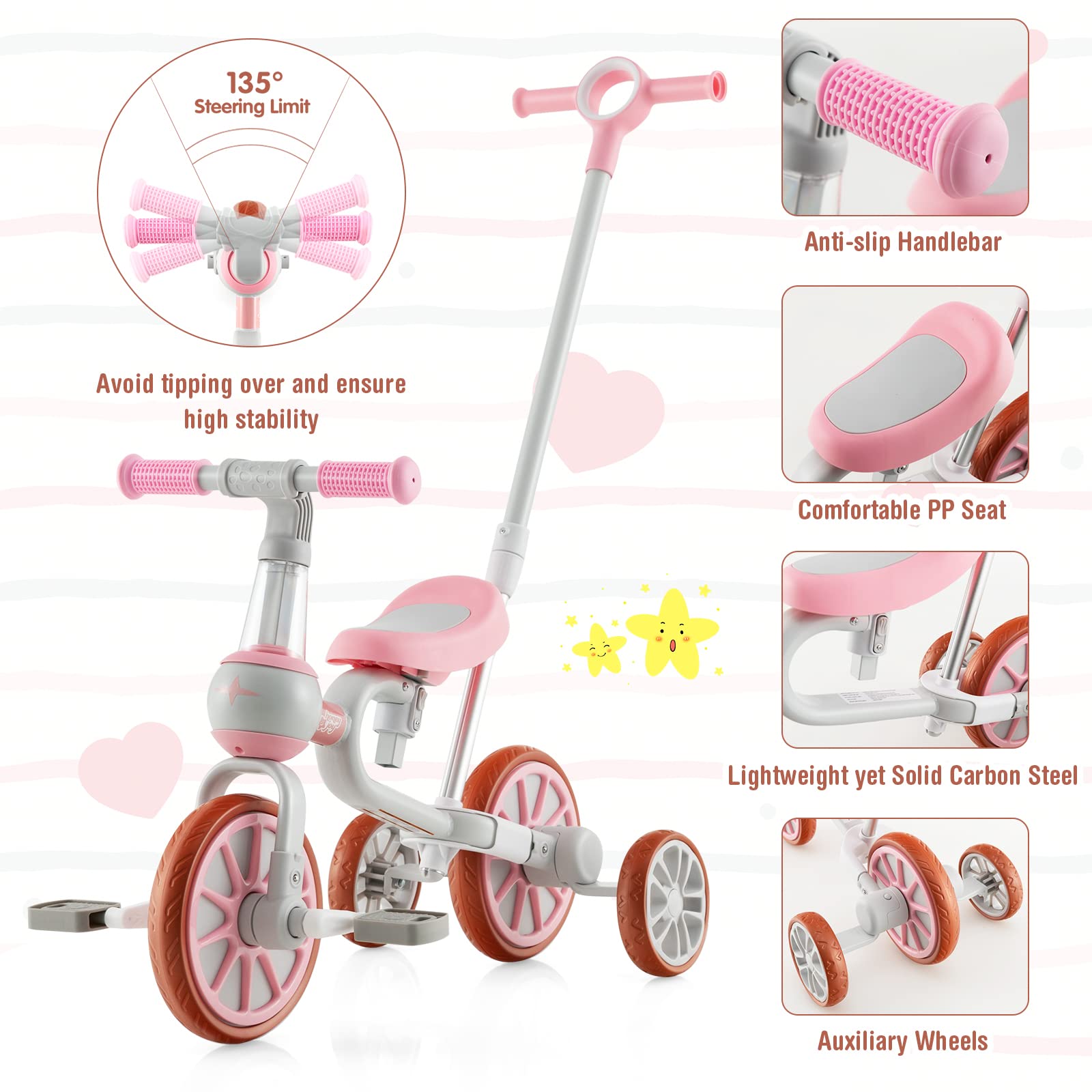 HONEY JOY 4-in-1 Toddler Tricycle, Kids Training Balance Bike w/Adjustable Parent Handle
