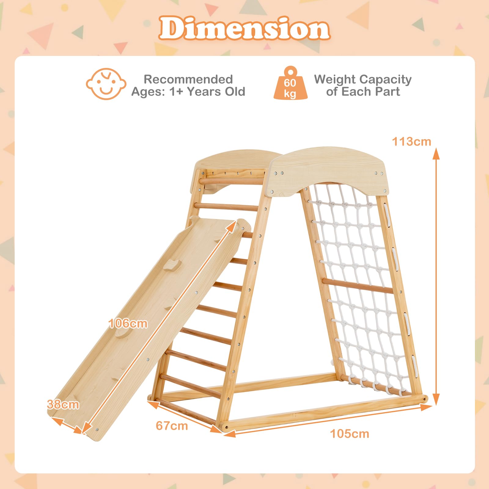 - Ideal Gift for Boys & Girls: The wooden Montessori climber playset is a great gift for kids, allowing them to play with friends. They can cultivate motor skills, enhance physical fitness, promote social skills as well as improve coordination and more.