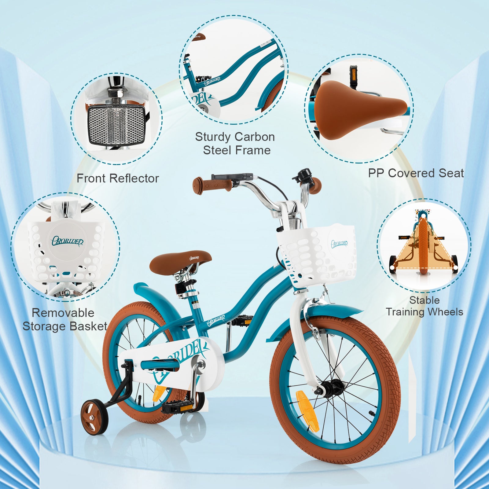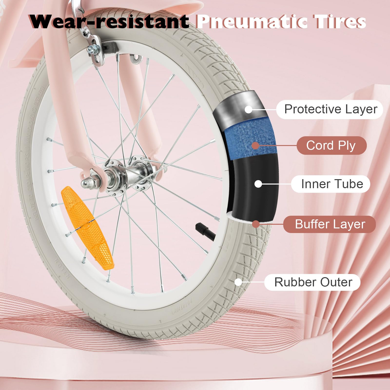 - Specially Designed for Young Riders: The wear-resistant pneumatic tires are made of multi-layer materials: rubber outer, buffer layer, cord ply, inner tube and protective layer, offering a safe and steady riding experience. The sturdy carbon steel frame and stable training wheels make it easy to ride. What’s more, the PP covered seat improves the overall comfort.