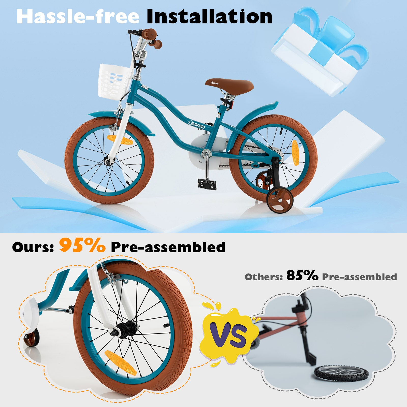 - 95% Pre-assembled & Optional Size: Different from other 85% pre-assembled bikes, ours with 95% pre-assembled design ensures quick and hassle-free installation. You can easily finish installation with your little ones. Plus, we provides multiple size options.