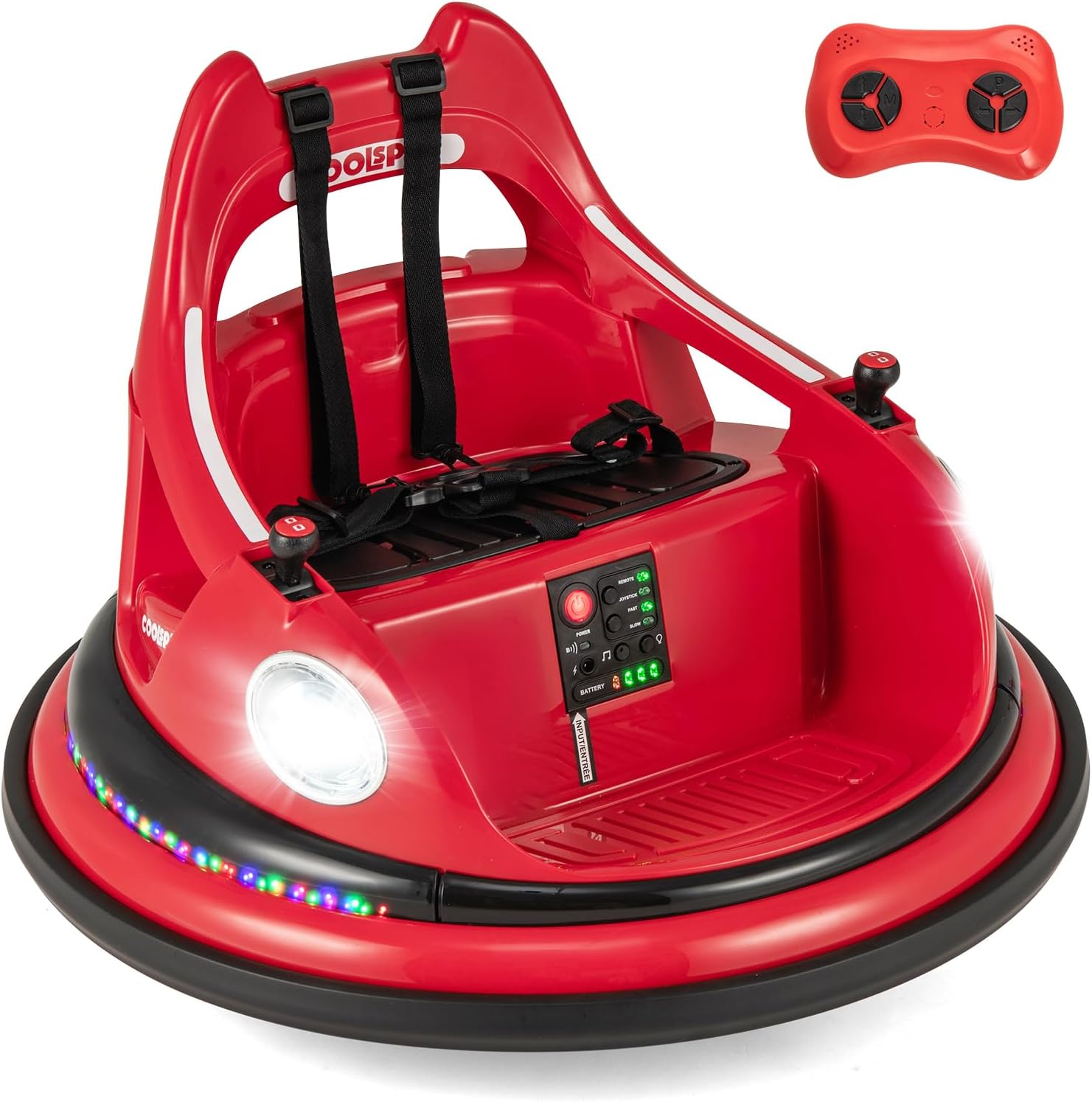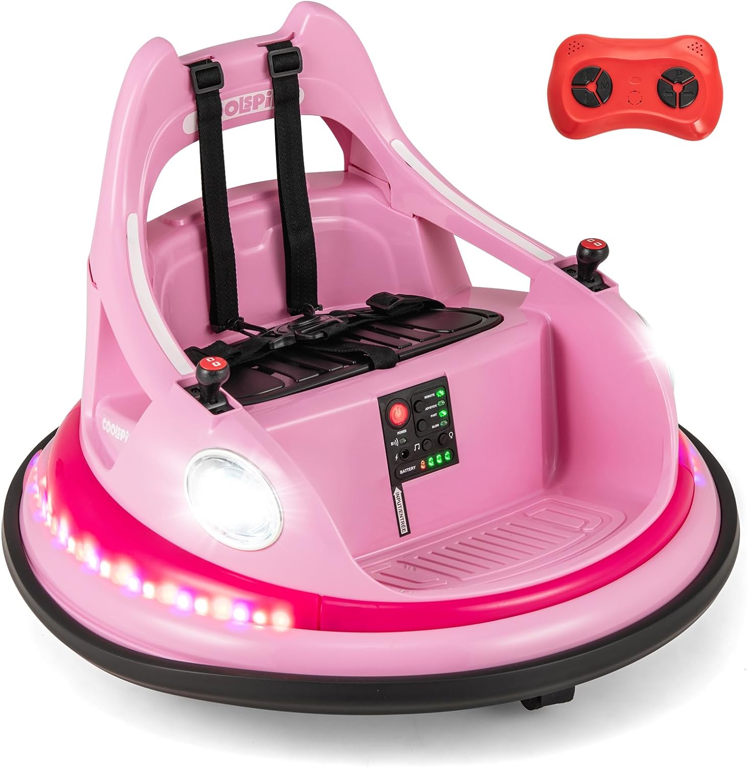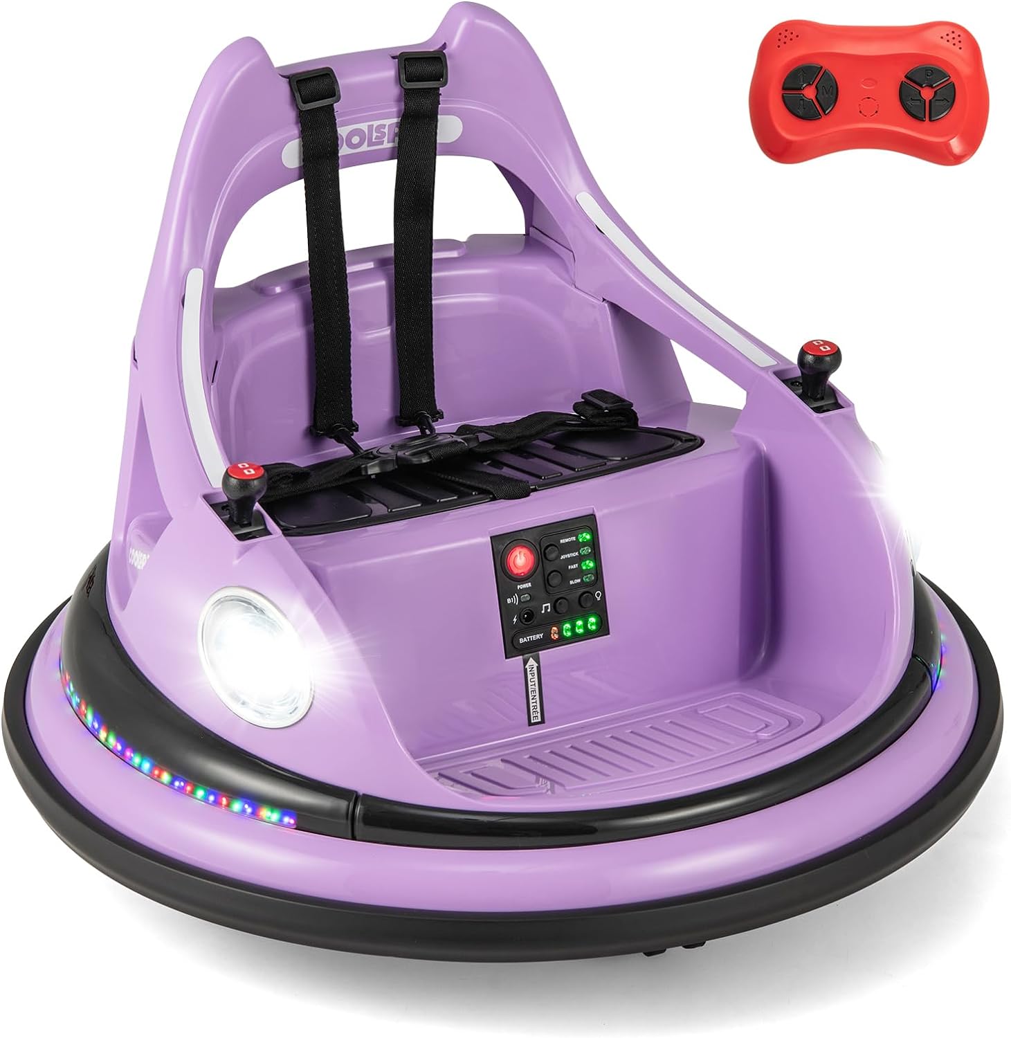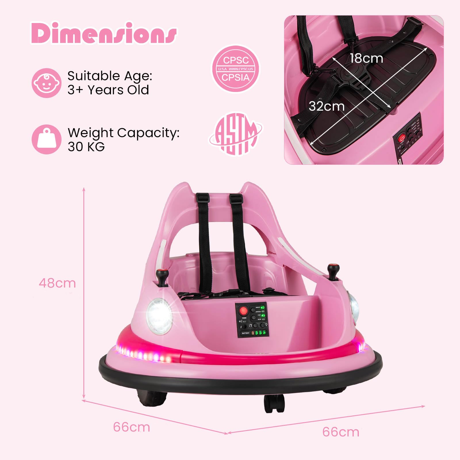 - More Delightful Features: Apart from 360° spin, the 12V electric bumper car also has fun music and 5 light effects to better delight your kids during their riding time. Moreover, it is designed with wireless connection to connect various devices to play kids’ favourite music.