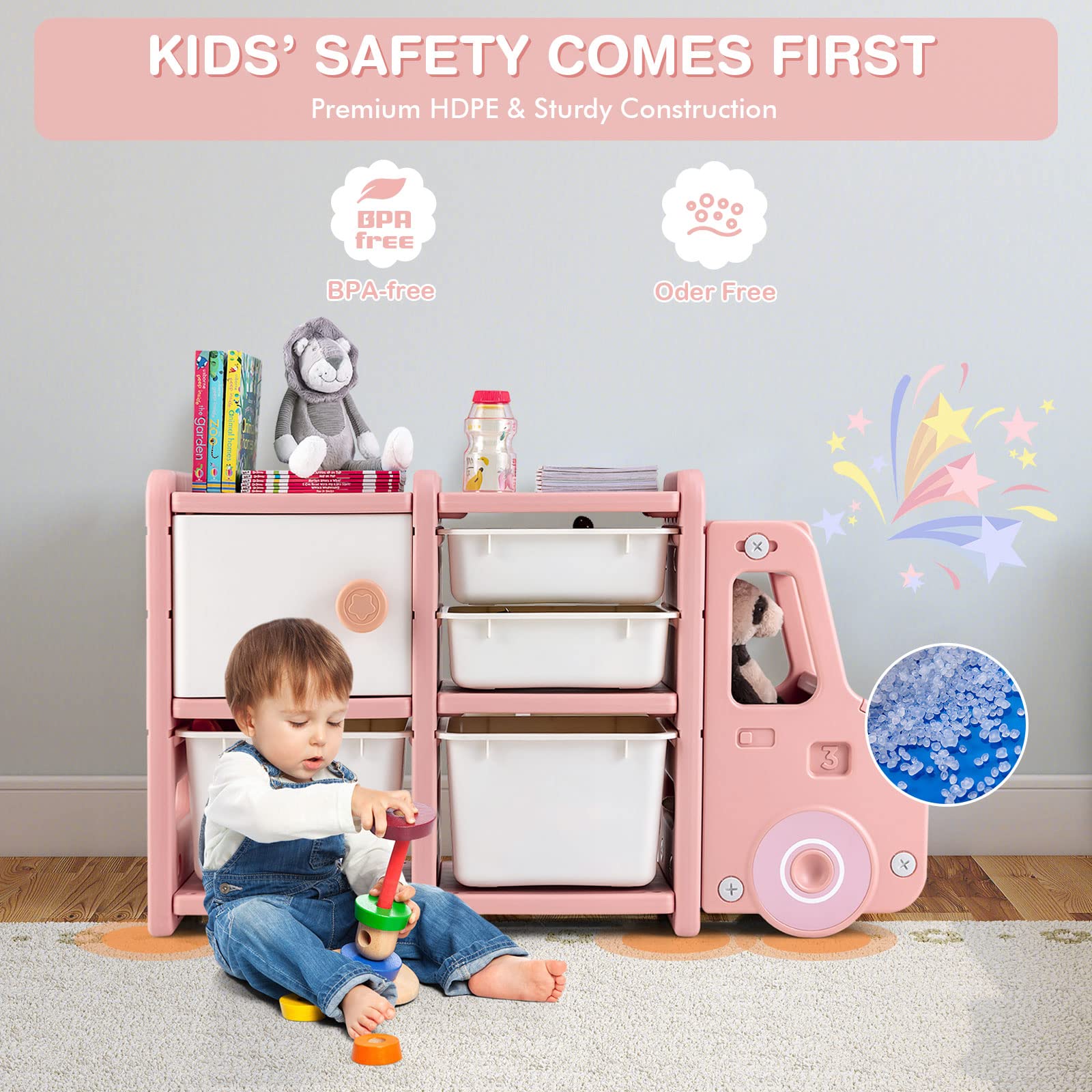 - Child-Friendly Material – This kids toy organizer is made of high-quality HDPE material, which is durable, BPA-free, odorless. And the sleek edges and rounded corners minimize the risk of bumping or scratching, while the stable construction avoids wobbling or tipping over.