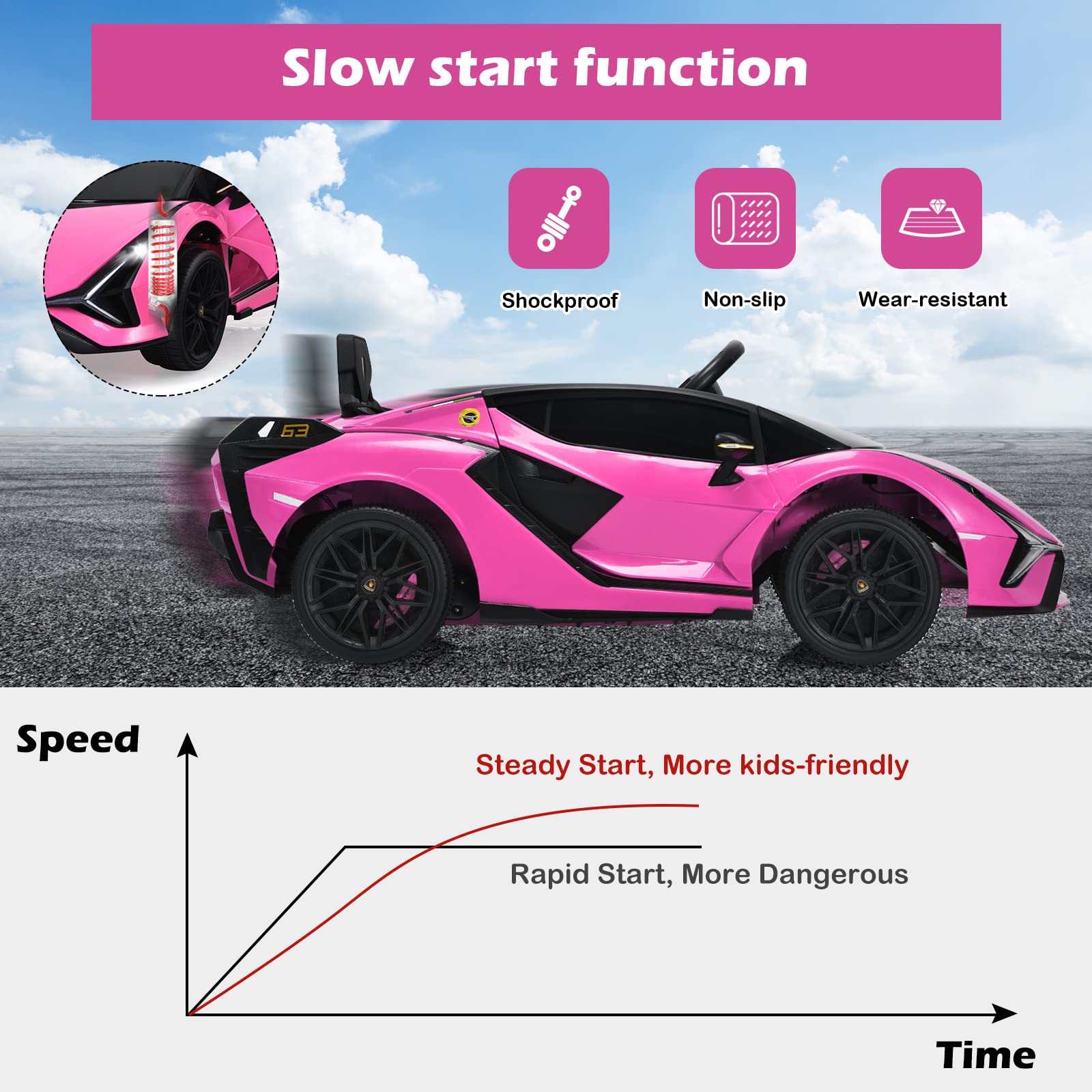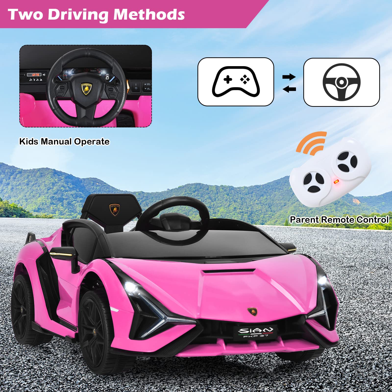 - ðŸŽTWO DRIVING MODES: Our Lamborghini has two driving modes, the parent controlling mode and the baby driving mode. Children can operate the toy car independently through the steering wheel and pedals. For young children, parents can control the car with a remote control to ensure the kid’s safety.