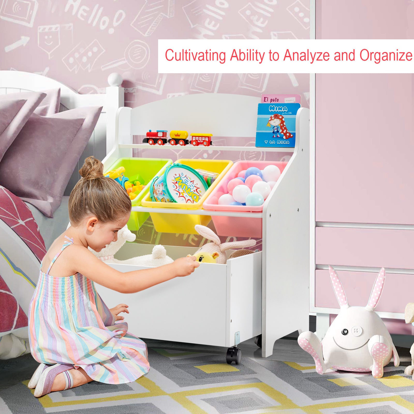 With large storage space, there’s no denying that our toy storage unit provides enough space for children’s toys, books or other items. There are wheels at the bottom to facilitate you to move to any other place. What’s more, the perfect size specially designed for children place and take items with convenience, meanwhile developing good storage habit. It is the perfect gift for boys and girls over three years old!