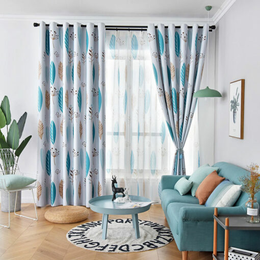 Nordic Blue Leaf Blackout Curtain Thick Curtains For Living Room