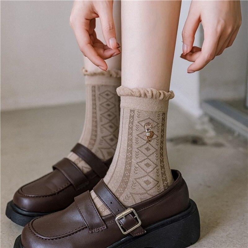 Retro Socks Women Flower Embroidery Harajuku Vintage