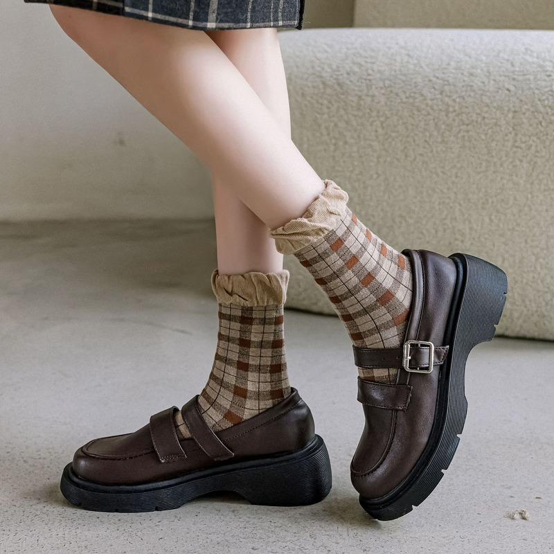 • Korean Retro Plaid Lace Mid-tube Socks 2pairs Korean Retro Plaid Lace Mid-tube Socks 2pairs $9.85